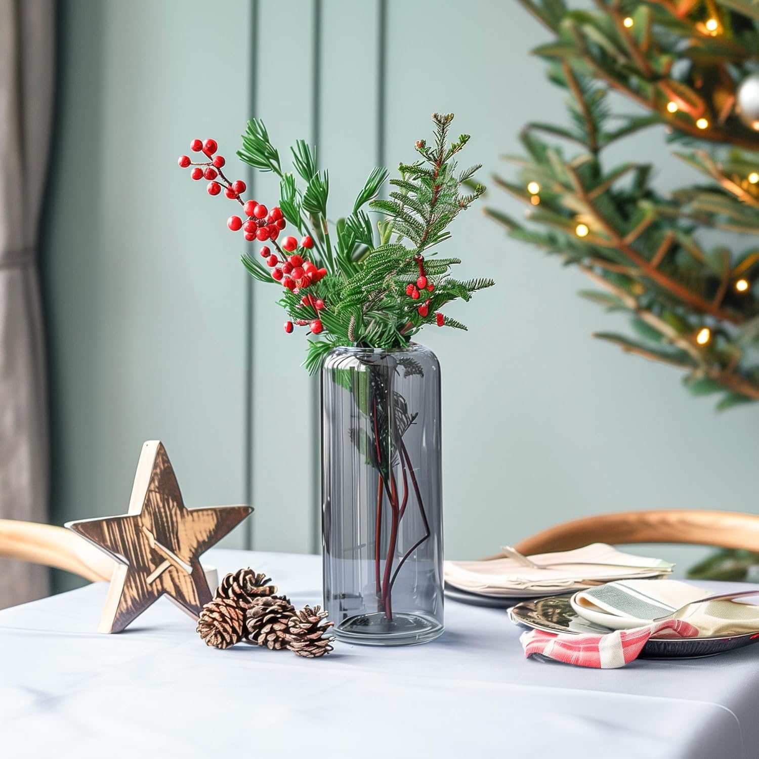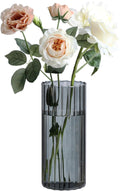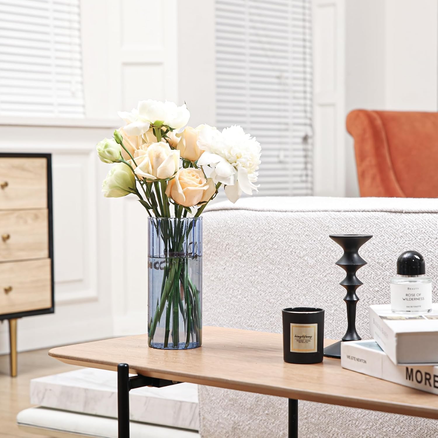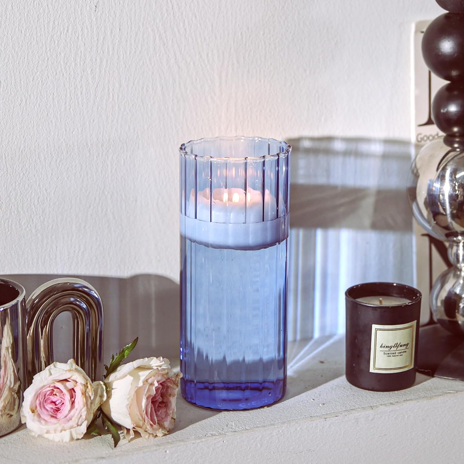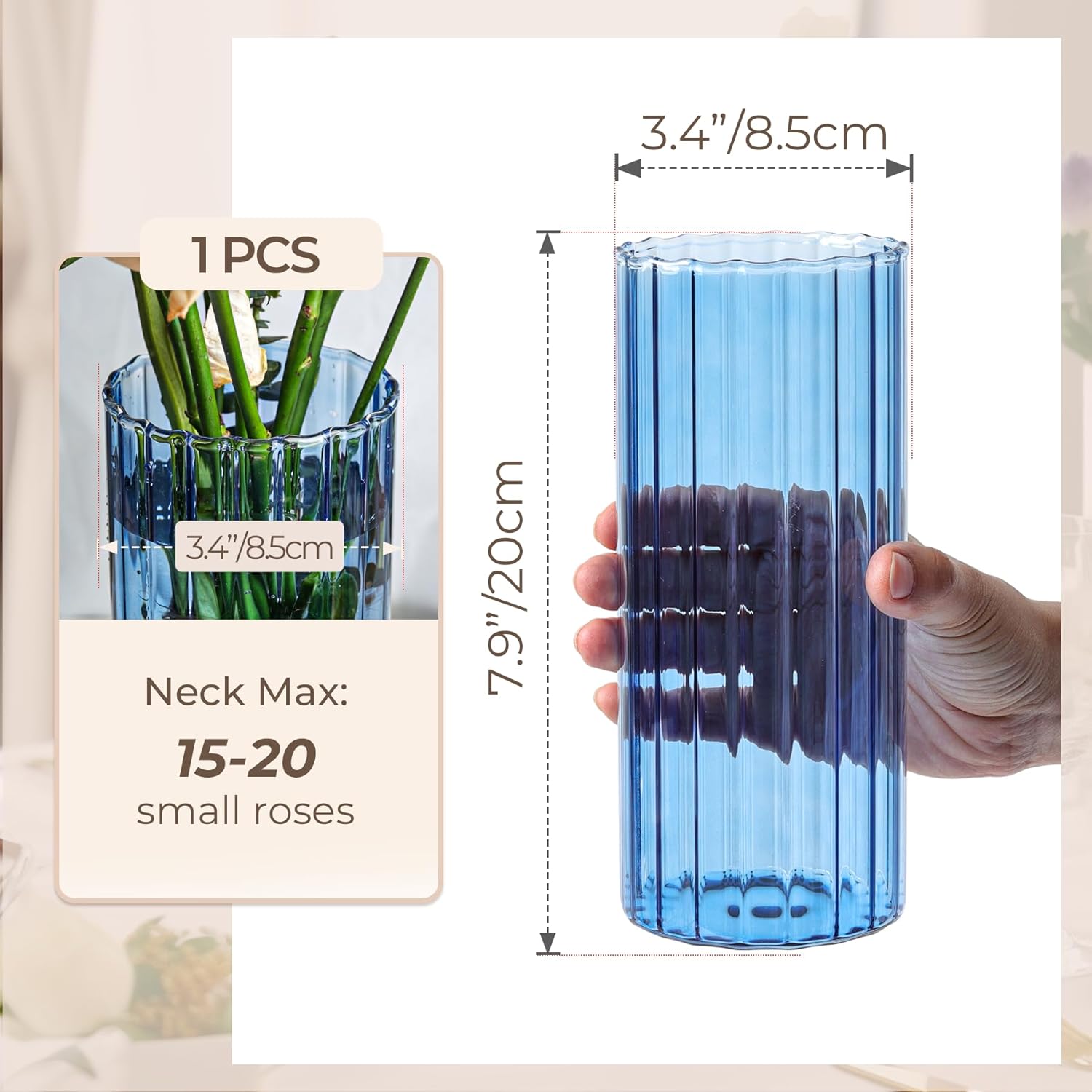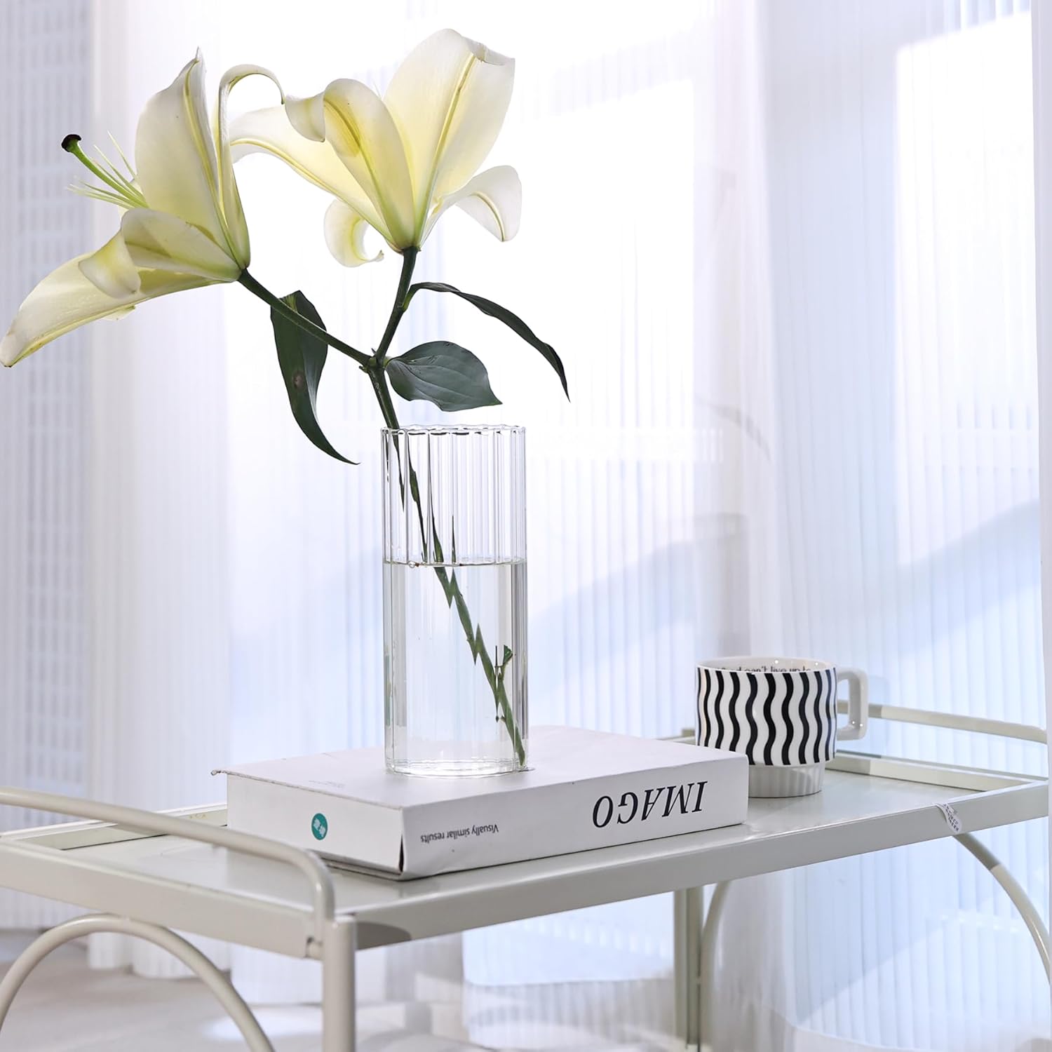 ComSaf Glass Cylinder Vases, Bud Vase for Centerpieces, 8 Inch Tall Ribbed Vase Hurricane Floating Candle Holder